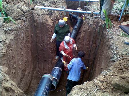 工地上,轟隆隆的挖掘機(jī)一刻不停地加緊作業(yè),龐大的壓路機(jī)穿梭來(lái)往,場(chǎng)外的施工人員忙著鋼管焊接、溝槽回填……各項(xiàng)工作如火如荼、緊張有序地進(jìn)行著。此時(shí)雖已避過(guò)高溫時(shí)段,但酷熱煩悶的高溫天氣還是讓人難以忍受,站在那里沒(méi)幾分鐘,我便開(kāi)始渾身冒汗了。望向旁邊的施工人員,烈日的暴曬和電焊的灼熱早已使他們衣衫浸透、汗流浹背,而他們卻渾然不覺(jué),臉上滿是認(rèn)真專注的神情。此時(shí)此刻,我才真正體會(huì)到他們嘴中所說(shuō)的“晴天一身汗,雨天一身泥”的含義,這是他們工作狀態(tài)的真實(shí)寫照。看著他們正全情投入地忘我工作著,便不好意思上前打擾,開(kāi)始獨(dú)自向前走去。