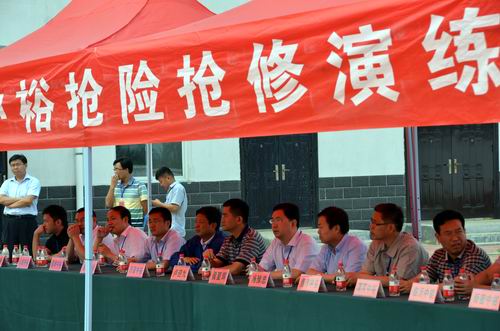 這是2013年由管理總部生產營運部組織、三門峽公司承辦、鄭州安騰管道工程有限責任公司配合的中裕系統高壓場站應急演練的場景,中裕系統各子公司安全管理及場站管理人員約60余人參加了現場觀摩。
